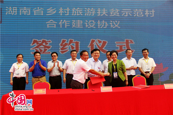 (湖南省乡村旅游扶贫示范村合作建设协议签约仪式在插柳村举行。向云峰 摄)