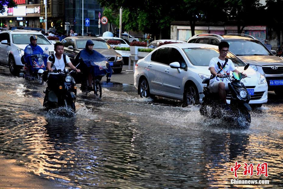 福州突降雷阵雨 市民涉水出行