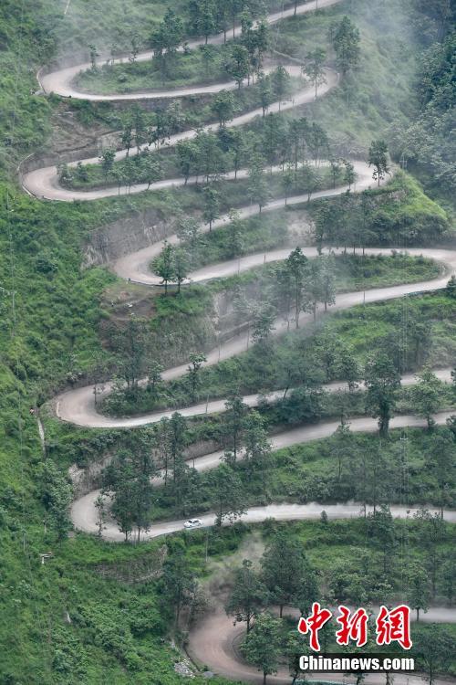 8月16日,赛车驶过二十四道拐赛道,扬起灰尘。当日,主题为“晴隆·让世界惦记二十四道拐”的中国汽车拉力赛在贵州省晴隆县举行,吸引来自中国、澳大利亚、伊朗等海内外约40辆赛车50名车手参加为期两天的比赛。晴隆县自2005年以来陆续举办了9届汽车相关赛事,本次拉力赛新增了史迪威公路赛道,比赛时间为8月16日至17日。其中16日是二十四道拐赛段,全程7.6㎞。晴隆二十四道拐抗战公路,是“史迪威公路”的形象标识,从山脚至山顶的直线距离约350米,垂直高度约260米;在倾角约60度的斜坡上以“S”型顺山势而建,蜿蜒盘旋至关口,全长约4公里。中新社记者贺俊怡 摄