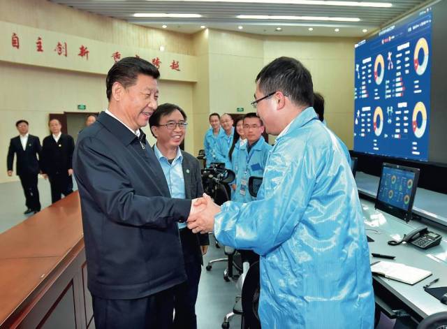 2016年4月26日上午,习近平在中科大先进技术研究院量子通信 京沪干线运管中心同科研人员交谈 李涛摄 /本刊