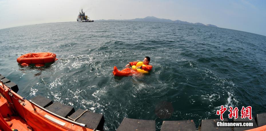 16名中国航天员和2名欧洲航天员,8月21日在山东省烟台市附近海域圆满完成了为期17天的海上救生训练任务。图为训练期间,8月17日,中国航天英雄杨利伟参加训练。中新社发 朱九通 摄