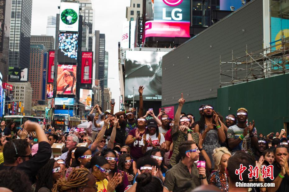 在纽约,众多民众聚集在时报广场观看日食。 中新社记者 廖攀摄