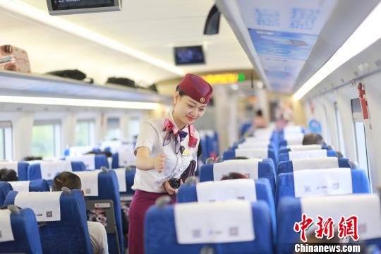 图为列车长包娜带正在进行日常的乘值工作。 杨敏 摄