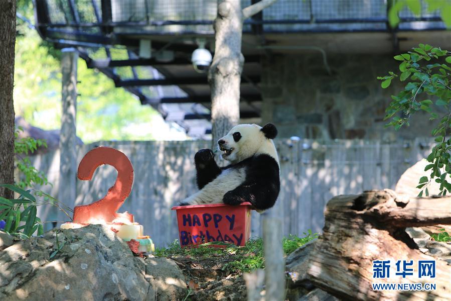 8月22日,在美国首都华盛顿的美国国家动物园,大熊猫“贝贝”在生日庆祝活动上亮相。新华社发(杨承霖摄)