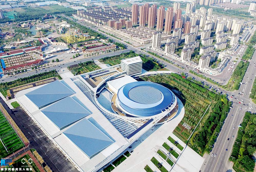 武清体育中心体育馆是第十三届全运会新建场馆之一,将承办乒乓球项目比赛。图为航拍武清体育中心体育馆。新华社记者岳月伟摄