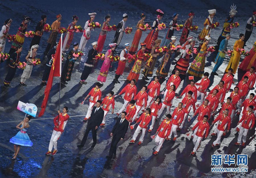 8月27日,第十三届全国运动会开幕式在天津奥林匹克中心体育场举行。 这是河南代表团进入开幕式现场。 新华社记者白禹摄图片来源:新华网
