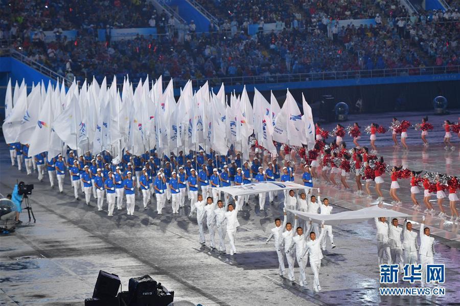 8月27日,第十三届全国运动会开幕式在天津奥林匹克中心体育场举行。这是第十三届中华人民共和国运动会会旗方阵进入开幕式现场。新华社记者朱峥摄 图片来源:新华网