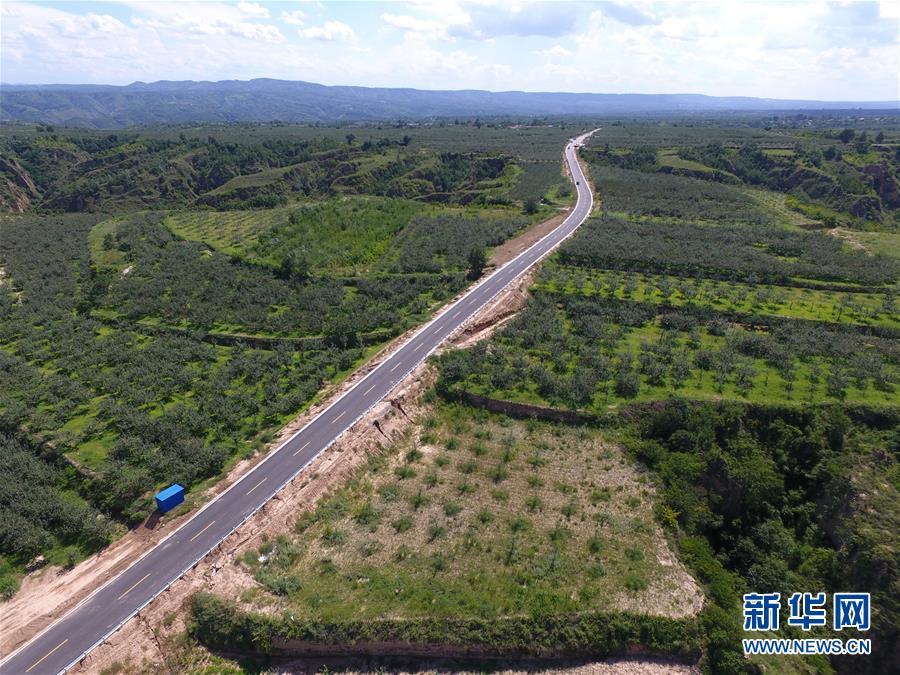 沿黄公路延安段穿过一片苹果林(8月9日摄)。