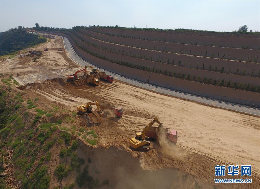 工程收尾阶段的沿黄公路渭南段(8月8日摄)。