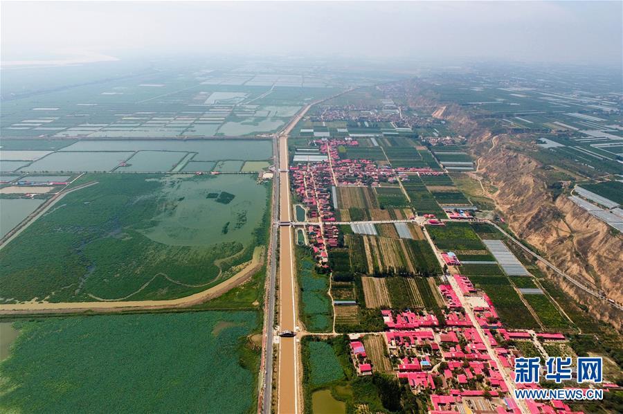 沿黄公路渭南段从渭南市大荔县多彩渔村景区穿过(8月8日摄)。