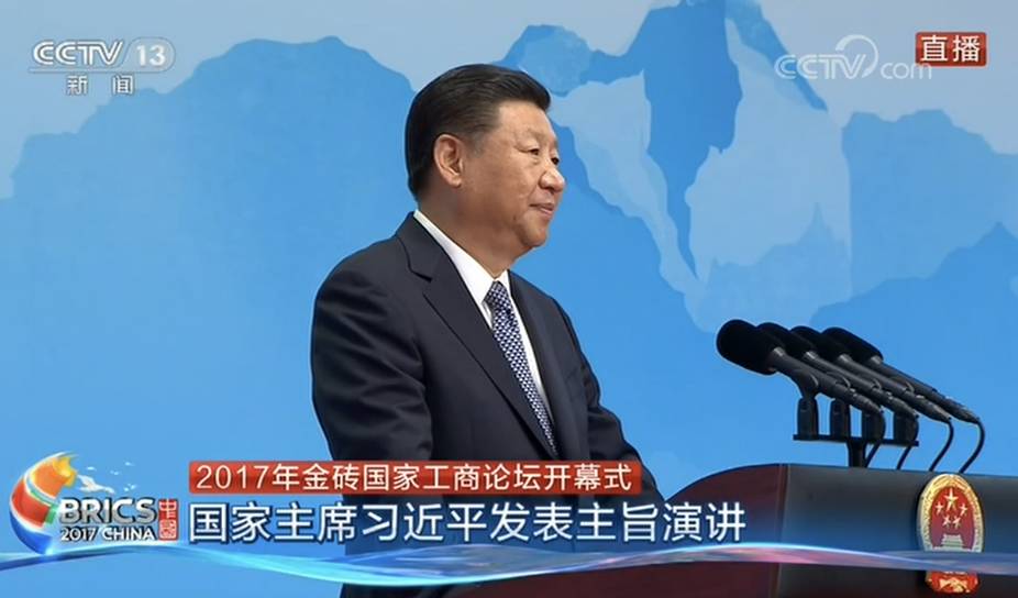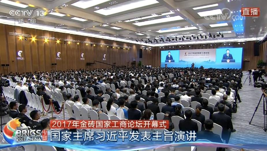 今日下午,2017年金砖国家工商论坛开幕式在厦门国际会展中心举行,习近平主席出席开幕式并发表主旨演讲。