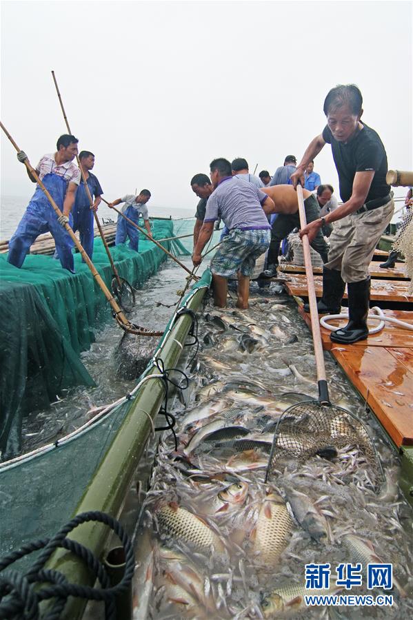 9月6日,江苏常州的渔民在太湖指定水域收网捕鱼。