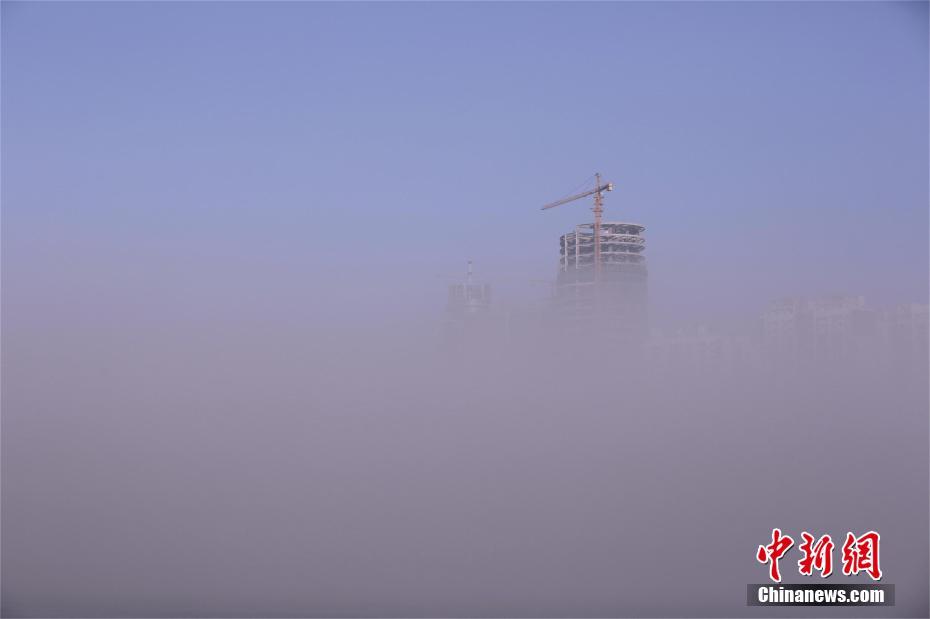 湖北襄阳现平流雾景观 汉江两岸如梦如幻