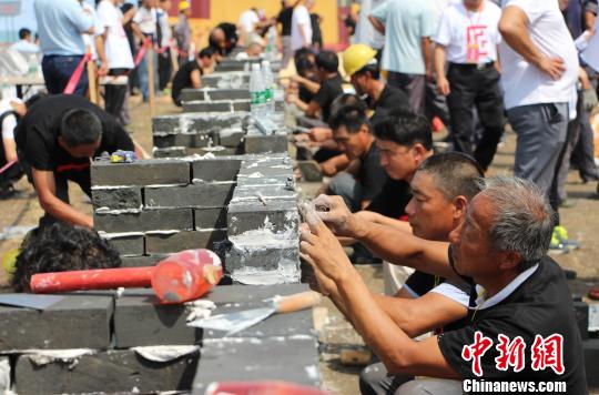 山东省文物职业技能大赛7日开赛,瓦匠们在现场大秀绝活。赵晓 摄