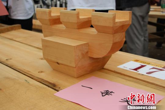 山东省文物职业技能大赛8日闭幕,现场展示木作组一等奖作品。赵晓 摄