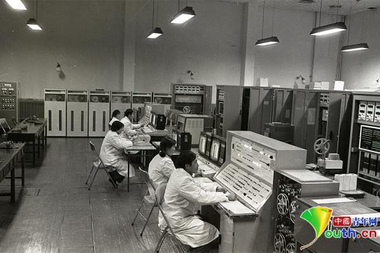 老一辈航天测控人在机房工作。 西安卫星测控中心供图
