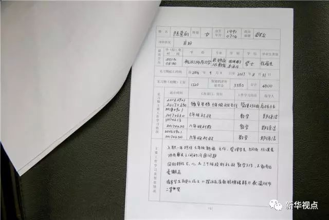这是8月23日拍摄的陈莹丽的考核鉴定表。新华社记者 张铖摄