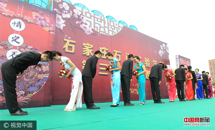 石家庄一中学举办教师节集体婚礼