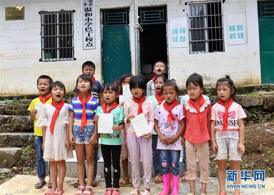 孩子们在广西大化瑶族自治县雅龙乡温和小学巴丁教学点的孩子们在缅怀蒙志年老师(9月7日摄)。 新华社记者 周华 摄