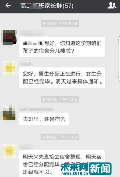 班主任通知宿舍已经分配完毕。(图片由受访者提供)