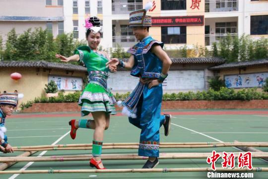 “非遗”传承人跳竹竿舞 吴贤坤 摄