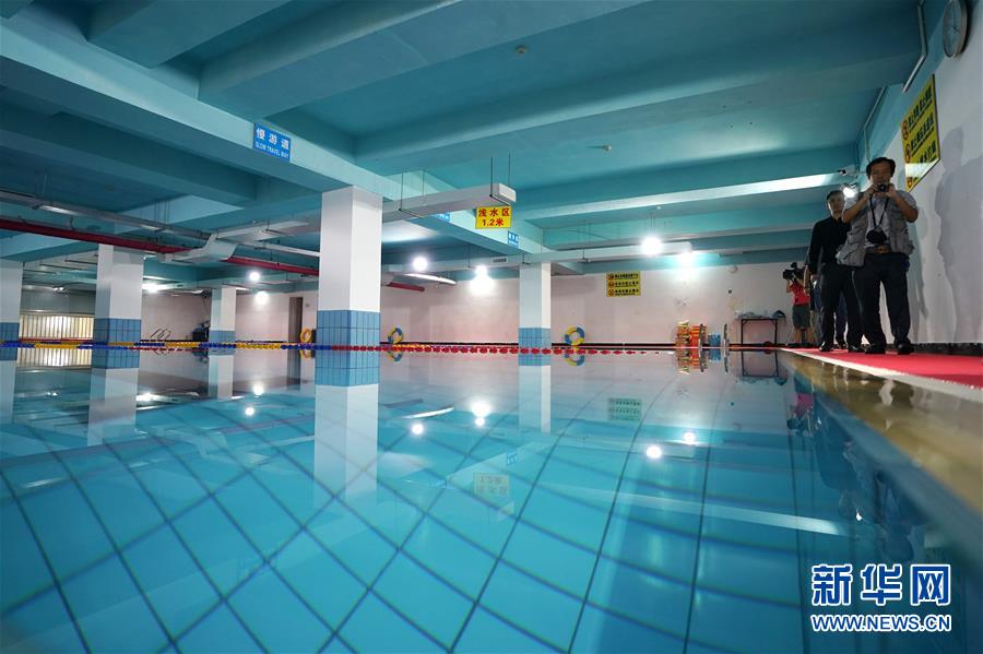 海淀区田村路街道永定路25号院由地下室改建而成的健身房游泳池(9月13日摄)。