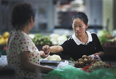 9月8日下午5时,赵金凤在菜市场买蔬菜。母亲平时只能吃素食。