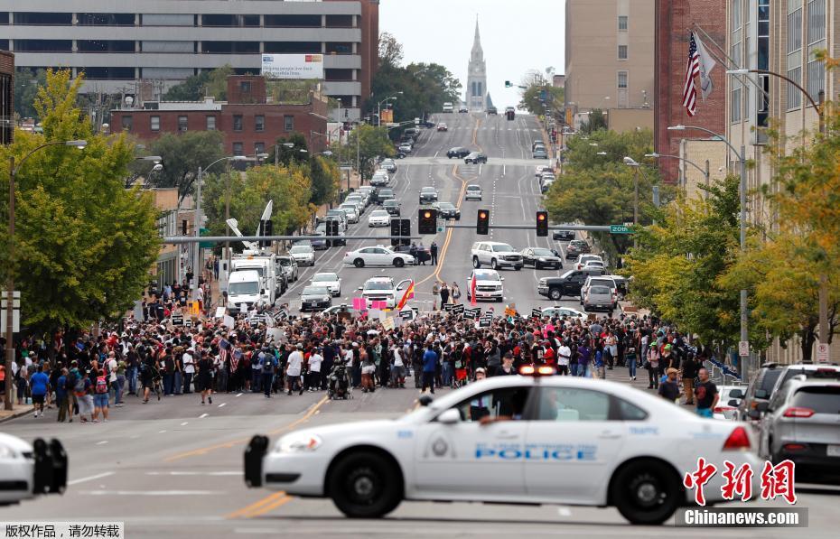 当地时间2017年9月17日,美国密苏里州圣路易斯,警员斯托克利(Jason Stockley)被判无罪,民众集会抗议。