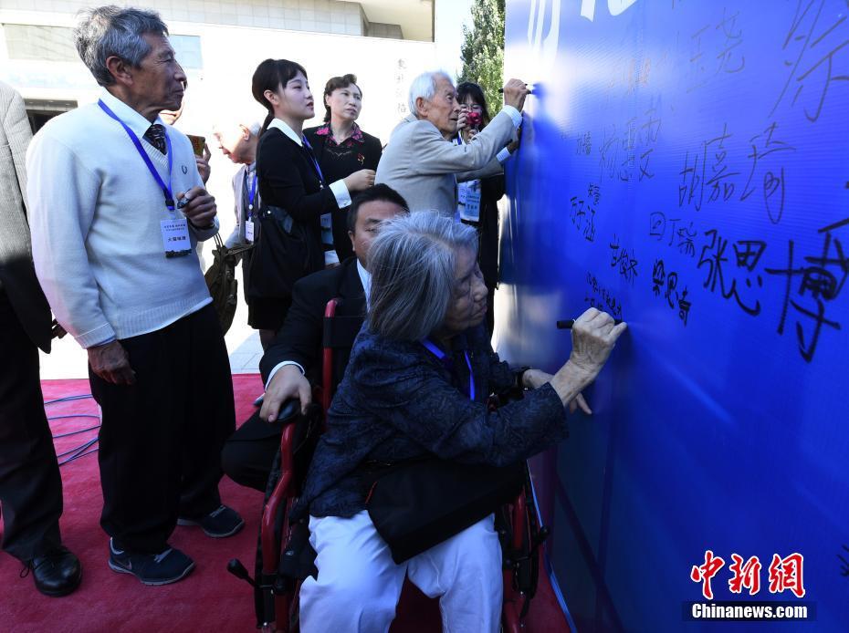 9月18日,日本反战人士在长春伪满皇宫博物院签名版上签名。当日,三千名各界人士通过宣誓、签名等活动纪念“九一八”事变发生86周年。中新社记者 张瑶 摄