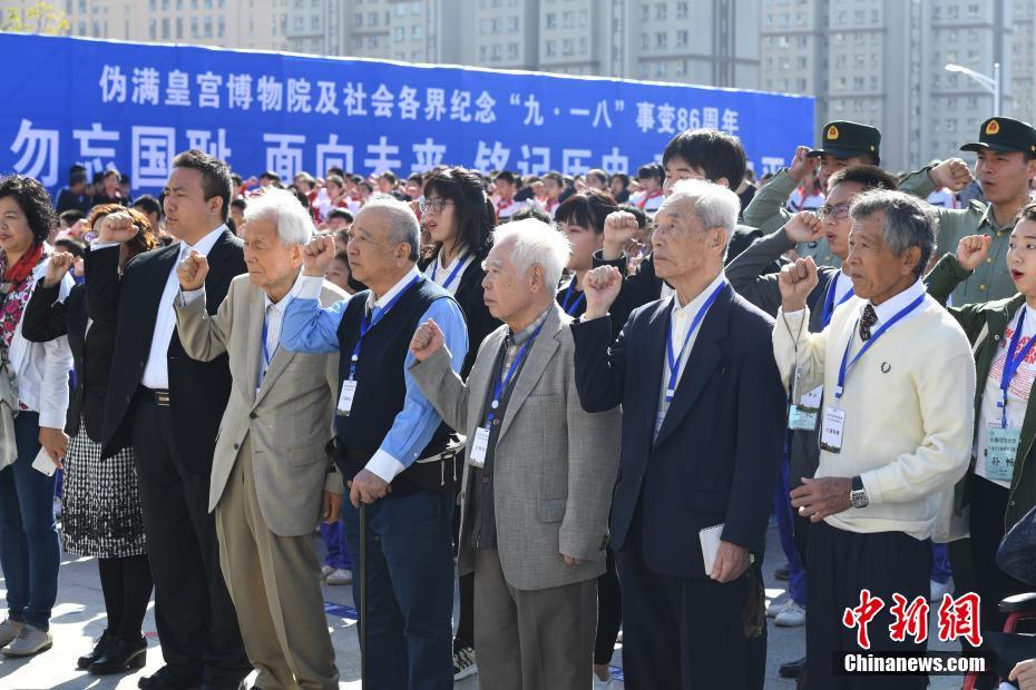 9月18日,日本反战人士在长春伪满皇宫博物院和平广场上宣誓。当日,三千名各界人士通过宣誓、签名等活动纪念“九一八”事变发生86周年。中新社记者 张瑶 摄