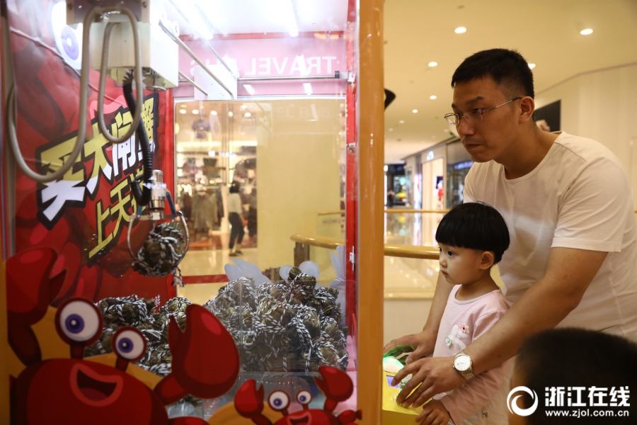 9月17日,杭州某商场惊现一台大闸蟹夹娃娃机,吸引了众多市民前来“尝鲜”。平时就超爱夹娃娃的小金姑娘一口气连抓10对蟹,她说比一般的娃娃好抓多了,“没想到,今年的第一顿蟹居然是这么来的!” 浙江在线记者 倪雁强 王建龙 通讯员 何光 摄 图片来源:浙江在线