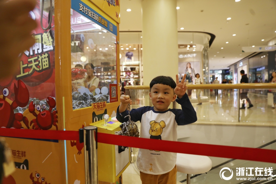 9月17日,杭州某商场惊现一台大闸蟹夹娃娃机,吸引了众多市民前来“尝鲜”。平时就超爱夹娃娃的小金姑娘一口气连抓10对蟹,她说比一般的娃娃好抓多了,“没想到,今年的第一顿蟹居然是这么来的!” 浙江在线记者 倪雁强 王建龙 通讯员 何光 摄 图片来源:浙江在线