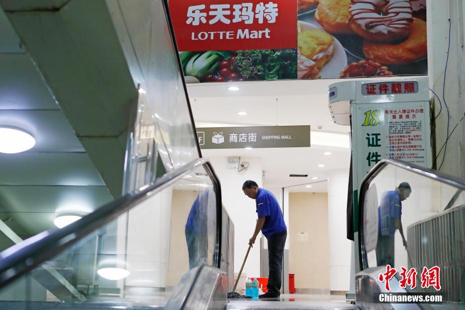 在上海乐天玛特普陀店,工作人员正在清洁店内环境。 殷立勤 摄