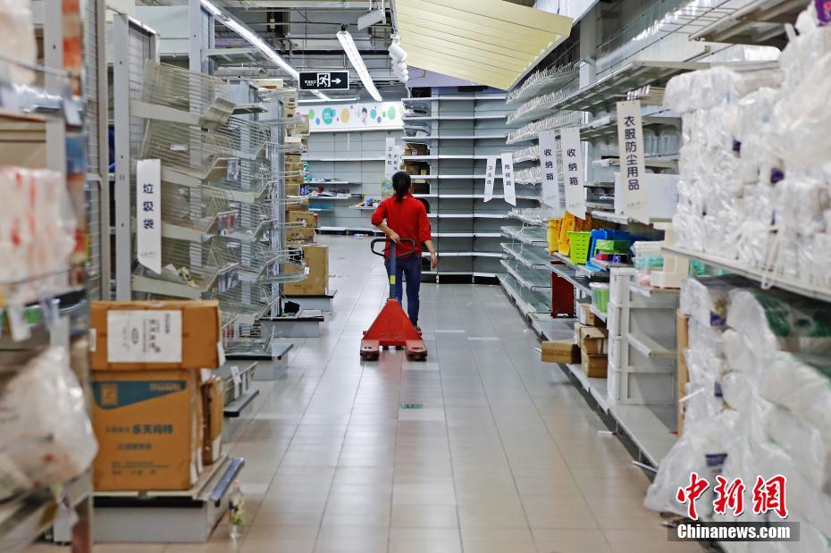 在上海乐天玛特普陀店,许多货架已空空荡荡。 殷立勤 摄