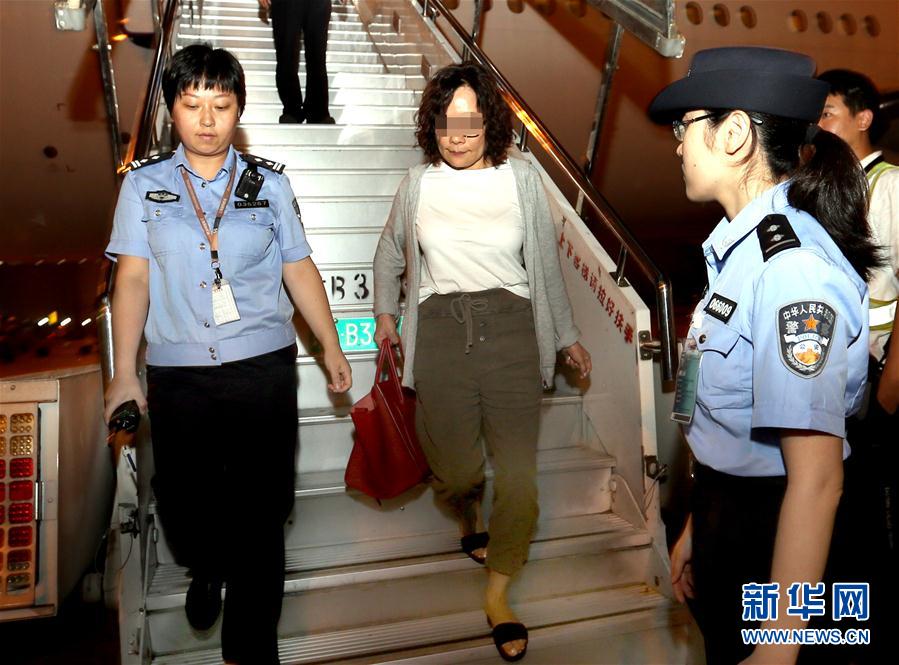 9月19日,警方人员在上海浦东国际机场将逃犯闵某押下飞机。当日,经过上海公安机关锲而不舍的工作,逃往美国16年并已取得美国国籍的“红通人员”闵某被成功劝返回国,这是“猎狐2017”专项行动中首名回上海自首的美国籍境外逃犯。据了解,今年以来,上海公安机关在“猎狐2017”专项行动中已成功抓获64名犯罪嫌疑人。新华社记者凡军摄