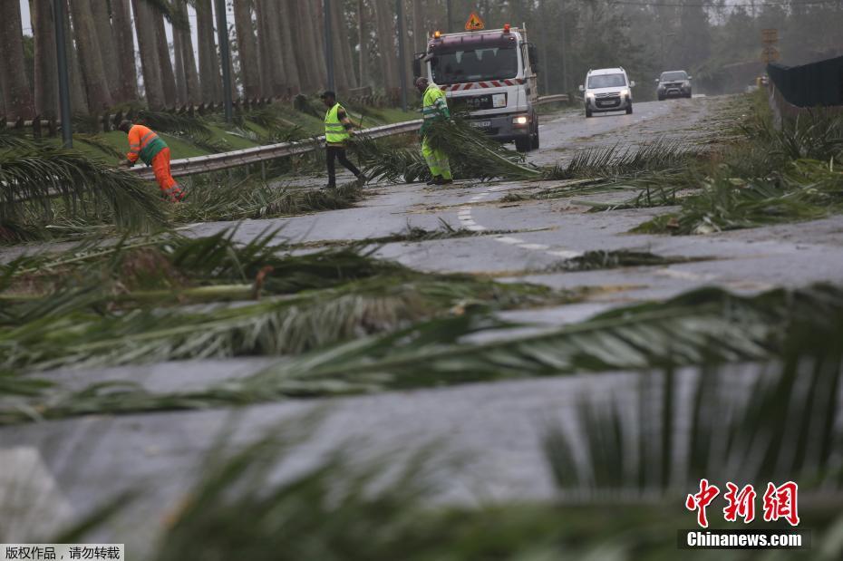 图为当地时间9月19日,法属瓜德罗普,工作人员清理被大风挂到公路上的树枝和树叶。瓜德罗普政府18日发布“红色警报”,呼吁低洼地区居民转移。当地官员警告说,岛上将出现洪水,许多社区将在一夜之间被淹没。