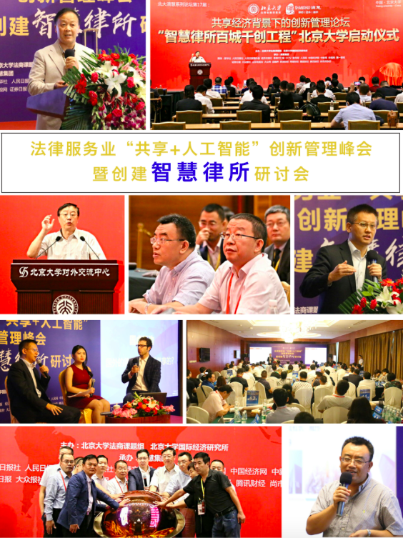 9月18日,由北京大学法商金融课题组和北京大学国际经济研究所联合主办的《法律服务业“共享+人工智能”创新管理峰会暨创建智慧律所研讨会》(简称“智慧律所高峰论坛”)在北京大学英杰交流中心隆重召开,智慧律所百城千创工程在北京大学正式启动。据悉,智慧律所百城千创工程要在全国100个城市,1000家律所推进智慧律师事务所的进程。