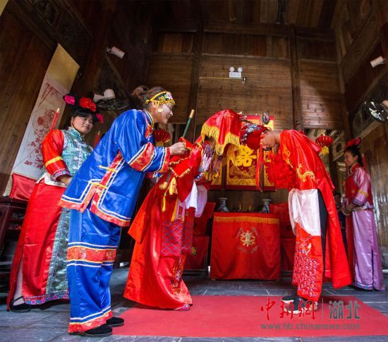 中新网湖北新闻9月22日电(李韦)武汉民俗博物馆凤娃古寨“民俗狂欢节”21日举行,传统婚礼、皮影戏、陶艺展示、民俗歌舞等表演纷纷亮相。