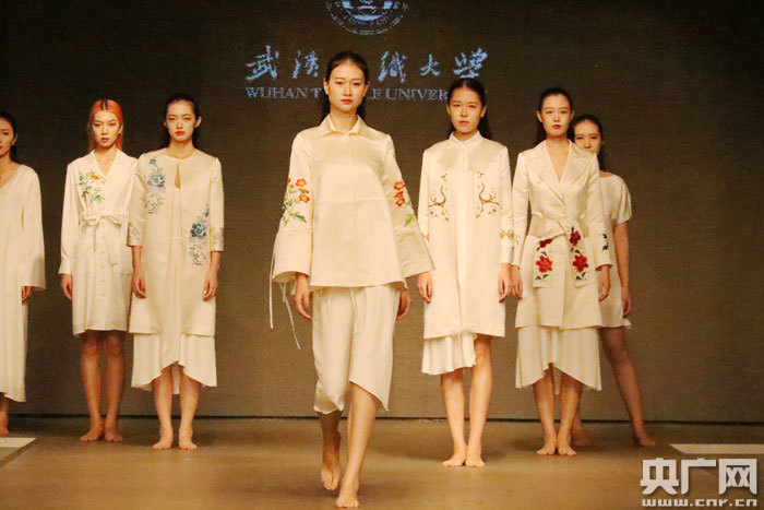 在武汉纺织大学,汉绣也能穿在身上做时尚表演。一群学生模特把拥有2300年历史的古老汉绣穿在身上,演绎了一场时尚T台秀。 现场展出的汉绣服装类型丰富,设计感十足。这些传统汉绣大胆运用了汉绣元素,独具汉味风情,绣功之精美令人叹为观止。现代休闲服“混搭”汉绣,穿在模特身上非但不显突兀,反而颇具时尚感。