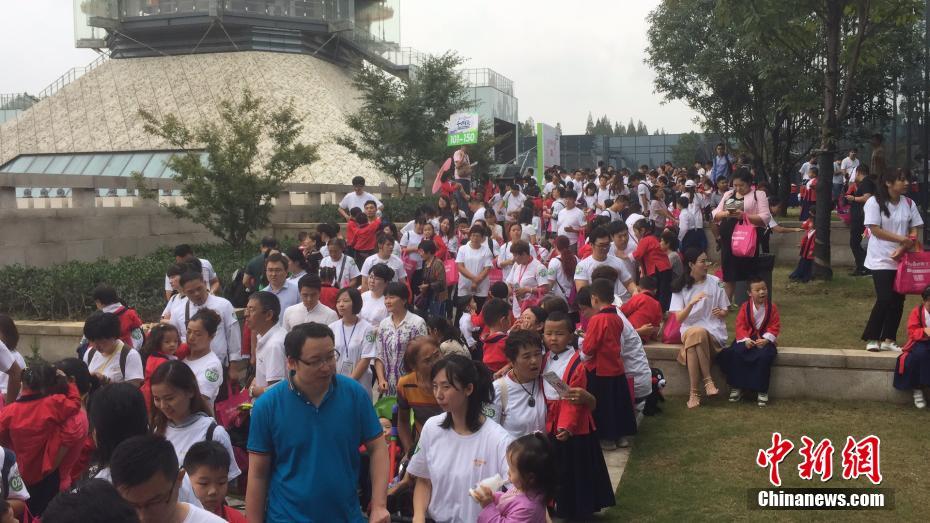 在活动现场,记者看到云集了儿童和父母数千人,这场规模庞大的中国传统仪式共吸引了南京近千组家庭参加。