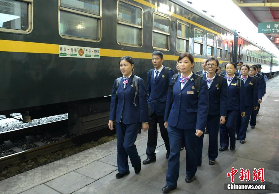 目前,中国境内还有81对慢车,主要分布在西南、西北和东北偏远贫困地区,这些“慢火车”继续着它的使命,见证着铁路沿线的发展变化,也助力沿线民众脱贫奔康。图为5634次列车乘务员们完成值乘任务后排队离开车站。刘忠俊 摄