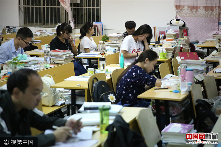 临近23:00点,自习室里还是有很多考研学生不肯休息。翟漱文/视觉中国