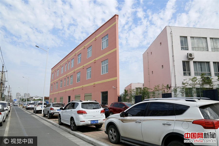 2017年9月24日,郑州,西南侧看该栋楼房时,由于视觉的关系,就像一张薄薄的“纸片”。子君/视觉中国
