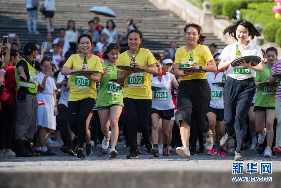 当日,澳门旅游局举办传统托盘比赛庆祝世界旅游日。参与者从大三巴牌坊出发,托着啤酒穿越澳门历史城区的街道,跑到议事亭前地的终点。