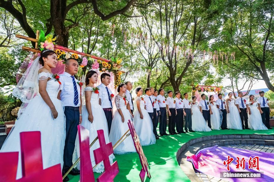 9月26日,8对来自江西省内铁路单位一线生产岗位,分别从事火车司机、车辆检修工种的青年职工,在单位同事、亲朋好友的共同见证下,庄重许下了对彼此挚爱一生的婚誓,将自己的甜蜜幸福与职工同事们一起分享。鲍赣生 摄