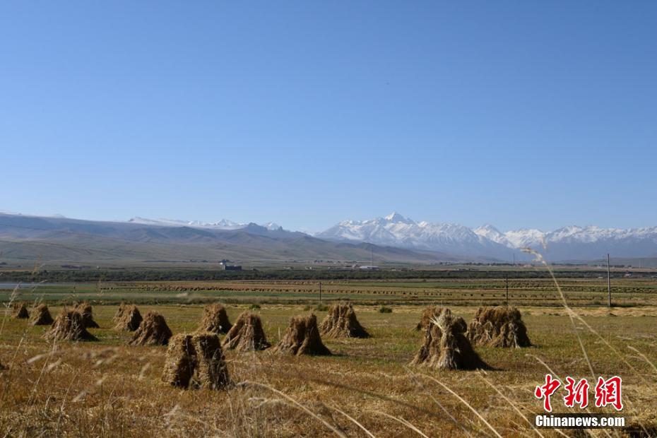 9月26日,受冷空气影响,甘肃肃南裕固族自治县出现雨夹雪天气。一场秋雪过后,肃南县皇城镇夏日塔拉草原银装素裹,美景如画。图为收割的牧草。武雪峰 摄