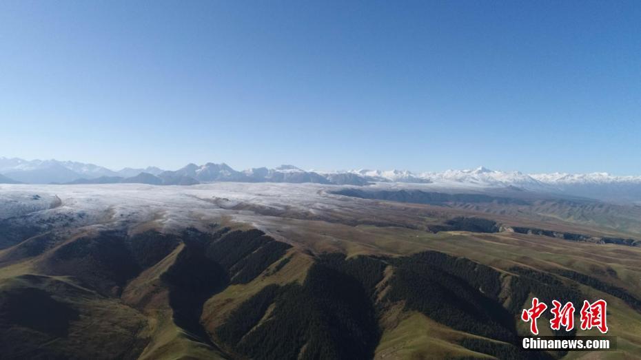 9月26日,受冷空气影响,甘肃肃南裕固族自治县出现雨夹雪天气。一场秋雪过后,肃南县皇城镇夏日塔拉草原银装素裹,美景如画。 武雪峰摄