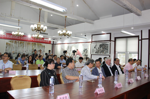 (中国艺术节基金会会长田建平、江苏省文化厅徐循华、法国欧亚中心主席高利昂、原南京市国资委主任鲍有贤、江苏省美术馆李明珍、原江苏省军区副司令员吕振林、江苏书画艺术基金主任张亚虎主任共同点亮启动球)