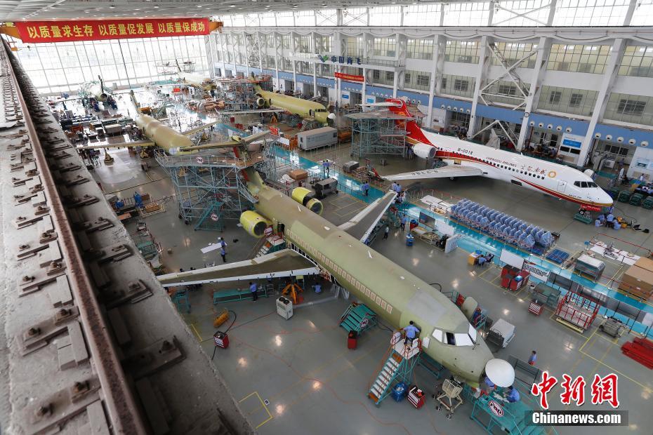 6架国产ARJ21飞机在上海同时总装 ( / 9)