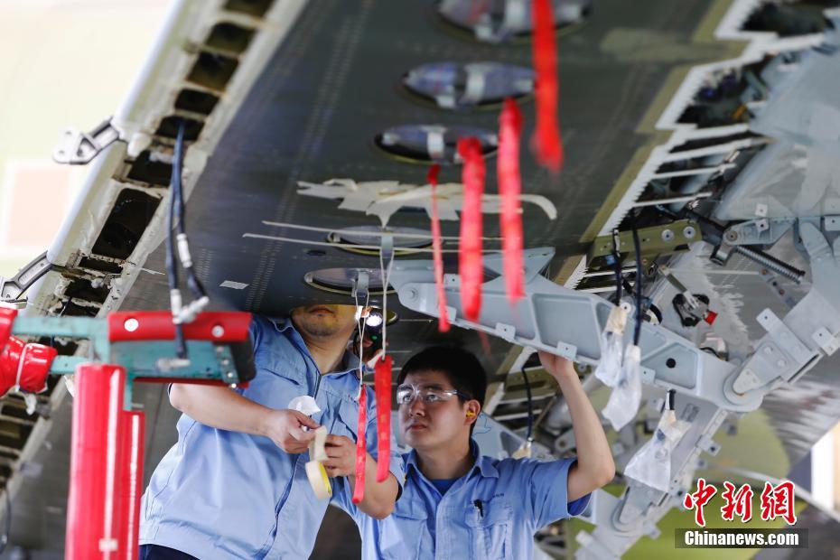 在上海飞机制造公司大场基地,工作人员正在认真的进行总装工作。殷立勤 摄